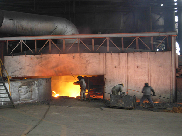 為了保證鐵水正常流動(dòng),爐前工必須不停地?cái)噭?dòng)。由于1#爐的爐前工大都是在爐前工作了多年,臉上的皮膚早已磨煉得適應(yīng)了這里的高溫。鐵水的溫度高達(dá)1470多度,在鐵口鉤殘?jiān)F鉤距離鐵水不過一兩米的距離,腳下踩的耐火磚溫度在200度以上,面前熱度也有200度左右。一個(gè)鐵水罐快要灌滿了,一位爐前工來到鐵水罐窺視孔,查看鐵水罐中鐵水的情況,鐵水安全放滿罐后,爐前會(huì)及時(shí)將鐵水放至另一鐵水罐。大約過了60多分鐘,鐵口處火花噴濺,渣鐵已經(jīng)出凈。隨后指揮鐵口工操縱液壓泥炮,將鐵口堵住,一爐鐵就此結(jié)束。“爐前工不比其他崗位,我們是一個(gè)團(tuán)隊(duì),只有每一個(gè)工序做到位、不出錯(cuò),才能出好鐵,單靠一個(gè)人是完不成的。”高爐車間主任說。